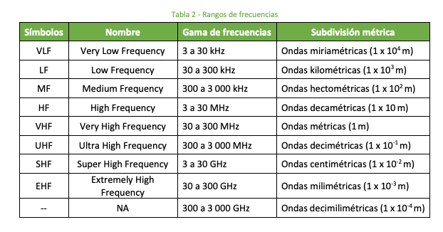 El espectro radioeléctrico es la porción del espectro electromagnético cuyo límite superior se fija convencionalmente por debajo de los 3,000 GHz.1 Conforme a la reglamentación internacional, en la tabla de abajo podrás apreciar como el espectro radioeléctrico se divide en nueve rangos de frecuencia.
