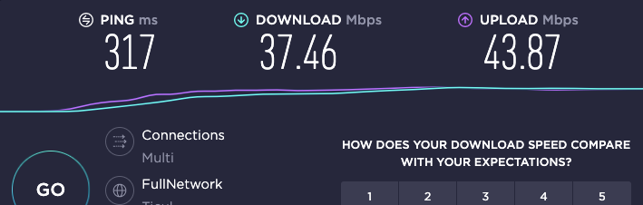 Tengo un servicio de VPN con el que probé distintas ubicaciones de servidores para probar latencia (ping) y anchos de banda.