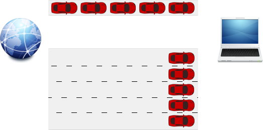 Imagina que el ancho de banda es una carretera y los datos que viajan por el internet son los coches viajando a la misma velocidad. Una carretera con alto ancho de banda tendrá cinco carriles y una carretera con bajo ancho de banda tan solo uno. En el primer ejemplo cinco autos llegarán simultáneamente en un segundo a su destino mientras que en el otro los cinco autos tardarán cinco segundos en llegar.