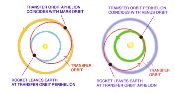 Generalmente cuando ves naves espaciales en pelis de ciencia ficción te imaginas a la tripulación viajando en línea recta hacia su objetivo. Las sondas robóticas que hemos enviado a otras partes del Sistema Solar así como los futuros viajes tripulados consideran viajes tomando ventaja de elipses y el manejo de energía potencial y cinética.