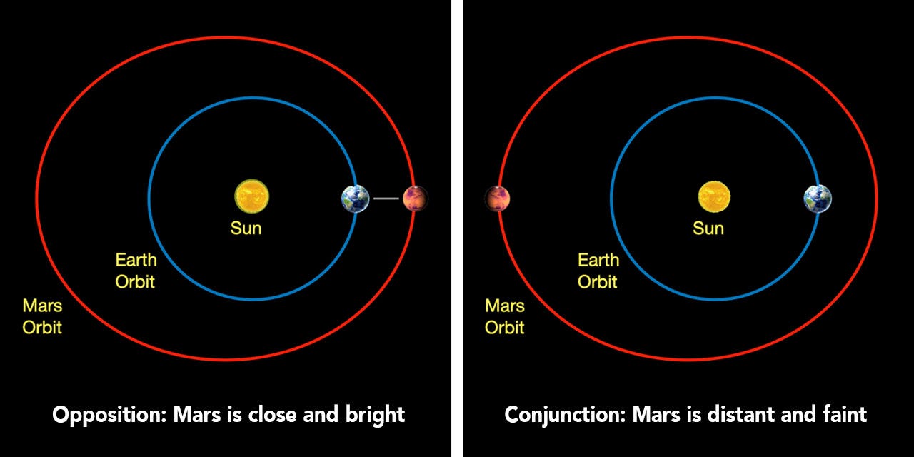 Déjame te muestro dos posiciones clave de la Tierra con respecto a Marte para que veas de lo que estoy hablando.