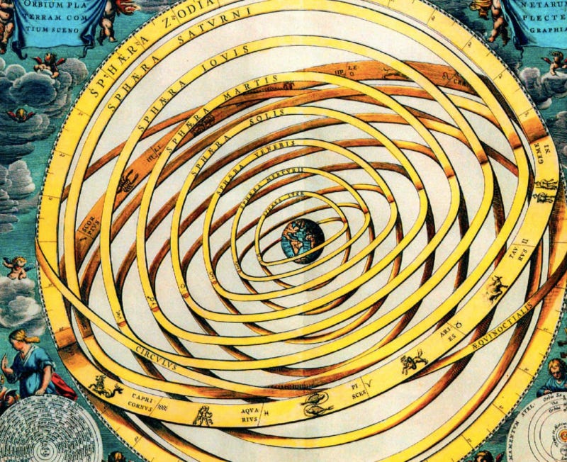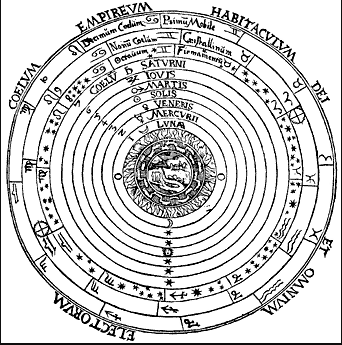 Él creía que la Tierra se encontraba inmóvil en el centro del Universo y que los astros se movían en círculos alrededor de ella. Creía que más allá de las esferas (planetas) había un primer motor que lo movía todo.