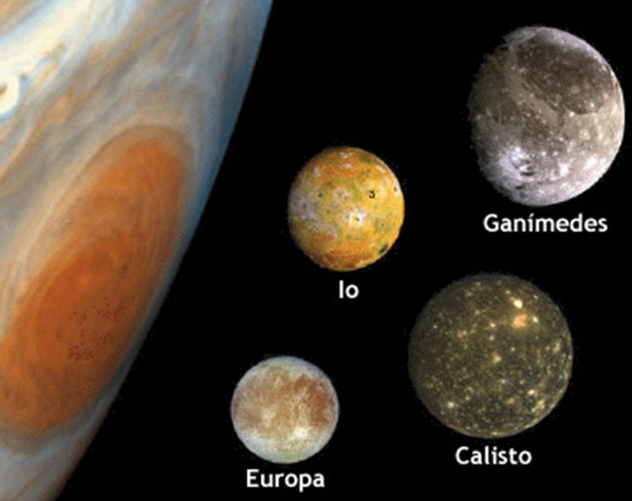 Imagen: satélites galileanos de Júpiter (Ganímedes, Calixto, Europa e Ío)